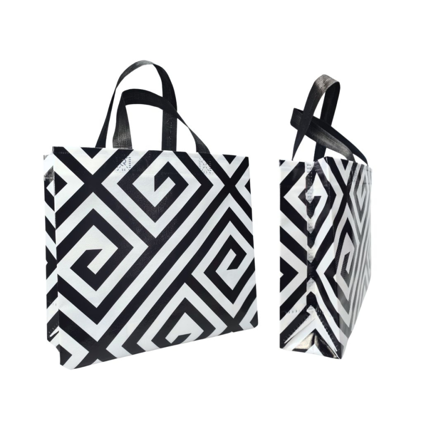Мініатюрна сумка з принтом "Лабіринт" з глянцевим ламінуванням. Місткість – 7,5 л. Чудово виглядає як на прогулянці, так і в якості подарункової упаковки. Ламіновані сумки практичні, надійні, довговічні та яскраві. На відміну від паперового або поліетиленового пакета вони прослужать у рази довше. Глянцеве або матове ламінування надає спанбонду вологостійкі властивості та підвищує його характеристики.