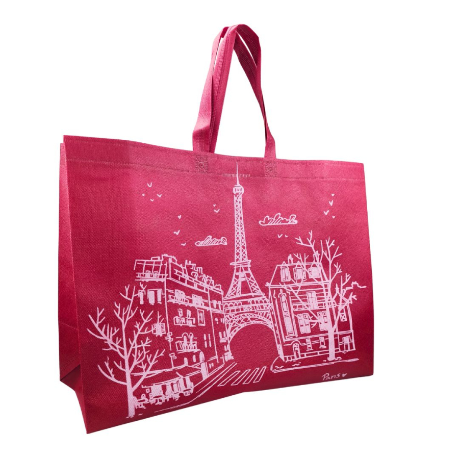 Велика екосумка з eco-friendly матеріалу спанбонд із принтом "Париж". Місткість – 37 л. Ідеально підходить для великих покупок, закупівлі продуктів на тиждень, вона вміщує крупні предмети, наприклад, велику коробку від взуття чи ролики. Ці сумки надзвичайно зручні у повсякденному використанні: дуже місткі, легкі, не розтягуються, не мнуться, займають мало місця, стійко тримають колір, не електризуються.