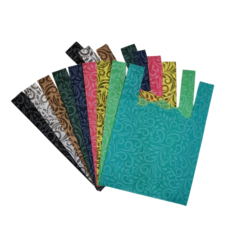 A Vest Style Bag with a 'Nakat' print made from eco-friendly spunbond material, available in a variety of colors. This bag offers a unique alternative to traditional polyethylene bags. Our produced eco-vest bags boast greater capacity due to their expanded gussets. Compared to plastic bags and paper packets, these eco-vest bags don't tear easily, even when accidentally punctured or sliced. With their high breathability, they are suitable for packaging and storing food products.