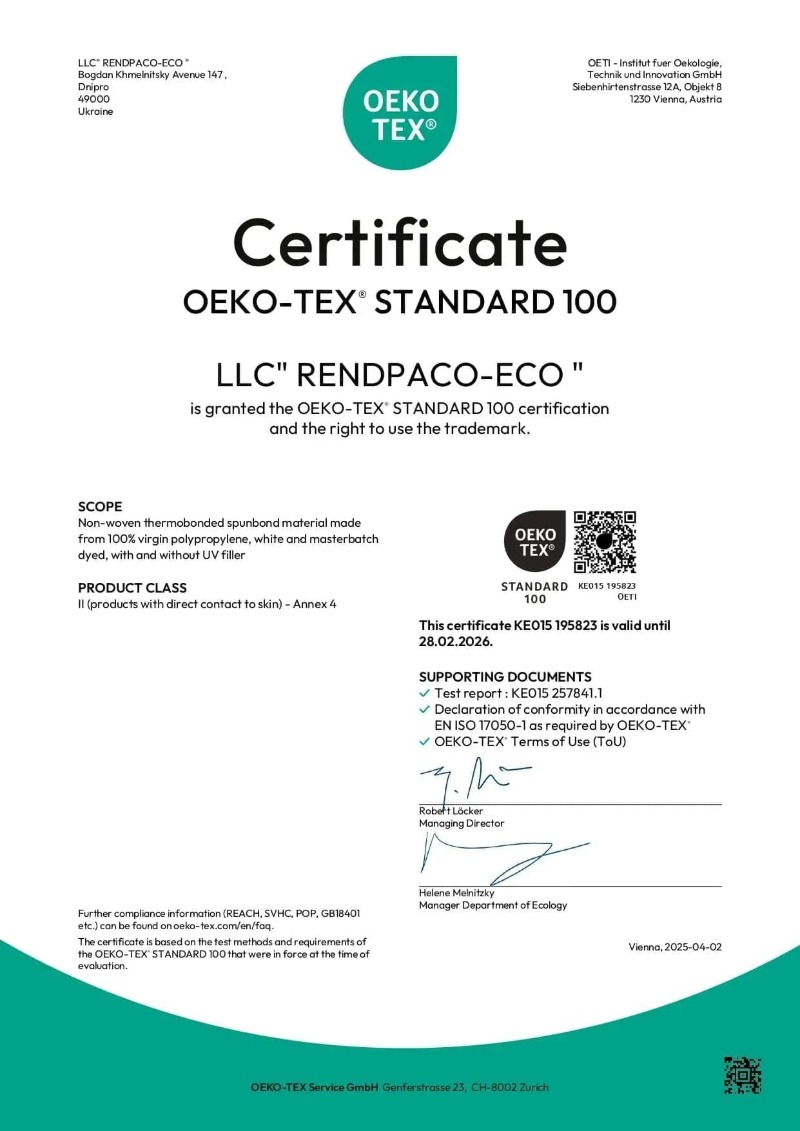 Kui teie eesmärk on osta odavalt spunbond-materjali, tehke otse koostööd tootjaga. Rendpacoeco on Ukraina ettevõte, millel on kogemusi ja väljakujunenud tootmistsükkel. See tähendab: